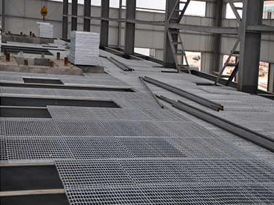 污水廠用鋼格板   污水處理廠用鋼格柵其特點為:   1、強(qiáng)度高:牢固的網(wǎng)格壓焊結(jié)構(gòu)使其具有高承載;   2、結(jié)構(gòu)輕:便于吊裝等特點;   3、外形美觀,經(jīng)久耐用:熱浸鋅表面處理使其具有相當(dāng)好的防腐能力,表面光澤美觀; ···